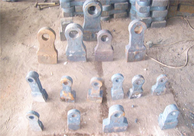 锤头是锤式破碎机核心零部件之一,排列在破碎机转子的锤轴上,锤头在破碎机高速运转时直接打击物料,最终破碎成合适的物料粒度。  破碎机锤头 市场上的破碎机锤头根据制造工艺可以分为两种:铸造和锻造,但是他们的耐磨程度是不一样的。由于破碎物料,头部需要良好的耐磨性而柄部又需要足够韧性,通常用合金钢、高锰钢、铸钢加高铬铸铁双金属复合等材料用锻造或铸造方法一次成型,配上相应的热处理工艺就比较经济一点,破碎机锤头根据材质可以分为种:高锰钢锤头、双金属锤头、复合锤头、大金牙锤头、中铬合金锤头,硬质合金锤头等.主要因素是二氧化硅的含量,现代工业下的技术表明:采用硬质合金锤头在耐磨性上表现良好。