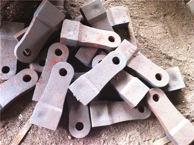 锤头是锤式破碎机核心零部件之一,排列在破碎机转子的锤轴上,锤头在破碎机高速运转时直接打击物料,最终破碎成合适的物料粒度。  破碎机锤头 市场上的破碎机锤头根据制造工艺可以分为两种:铸造和锻造,但是他们的耐磨程度是不一样的。由于破碎物料,头部需要良好的耐磨性而柄部又需要足够韧性,通常用合金钢、高锰钢、铸钢加高铬铸铁双金属复合等材料用锻造或铸造方法一次成型,配上相应的热处理工艺就比较经济一点,破碎机锤头根据材质可以分为种:高锰钢锤头、双金属锤头、复合锤头、大金牙锤头、中铬合金锤头,硬质合金锤头等.主要因素是二氧化硅的含量,现代工业下的技术表明:采用硬质合金锤头在耐磨性上表现良好。